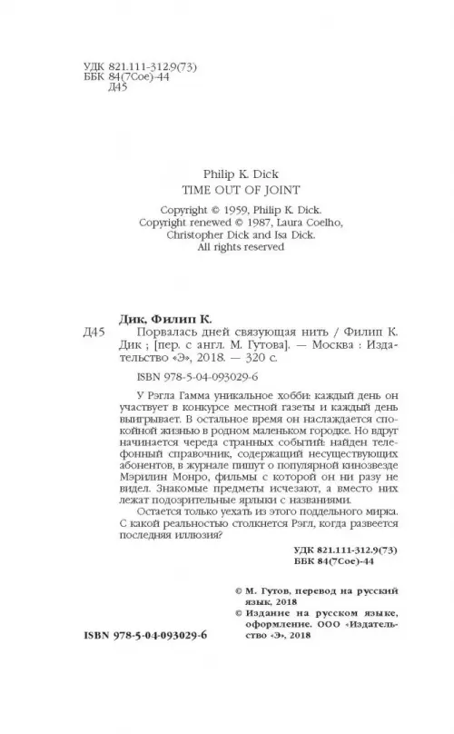 Если вы обнаружили ошибку в описании товара «Порвалась дней связующая нить» (авторы: Дик Филип Киндред), то выделите её мышкой и нажмите Ctrl+Enter. Спасибо, что помогаете нам стать лучше!