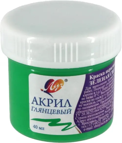Краска акриловая художественная, зеленая светлая, 40 мл