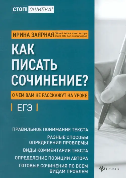 Если вы обнаружили ошибку в описании товара «Как писать сочинение? О чем вам не расскажут на уроках» (авторы: Заярная Ирина Юрьевна), то выделите её мышкой и нажмите Ctrl+Enter. Спасибо, что помогаете нам стать лучше!