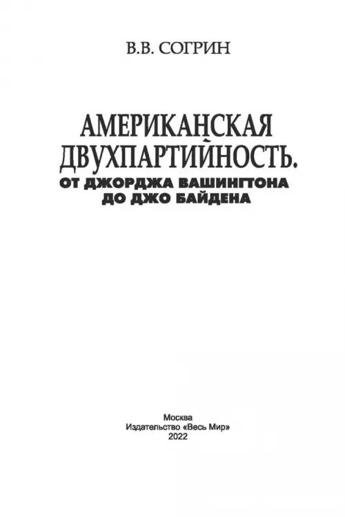 Если вы обнаружили ошибку в описании товара «Американская двухпартийность. От Джорджа Вашингтона до Джо Байдена» (авторы: Согрин Владимир Викторович), то выделите её мышкой и нажмите Ctrl+Enter. Спасибо, что помогаете нам стать лучше!