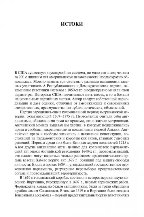 В США существует двухпартийная система, но мало кто знает, что она за двести с лишним лет американской независимости неоднократно обновлялась. Можно назвать три системы с разными названиями главных участников. А Республиканская и Демократическая партии, неизменные участники системы с 1850-х гг., неоднократно меняли свои параметры. Историки США насчитывают пять-шесть, а то и больше национальных партийных систем. Автор следует собственной периодизации и дает оценки, отличные от американских и современных отечественных, преимущественно публицистических, объяснений.