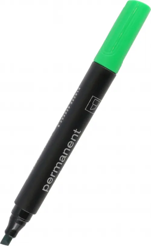 Перманентный маркер с нестираемыми, быстросохнущими чернилами на спиртовой основе. Чернила также погодоустойчивы и устойчивы к воде температурой до 100 градусов по Цельсию. Предназначен для нанесения надписей на большинстве поверхностей, включая камень, бетон, дерево, резина, металлы и др., кроме бумаги. Скошенный наконечник, ширина письма от 1 до 5 мм.