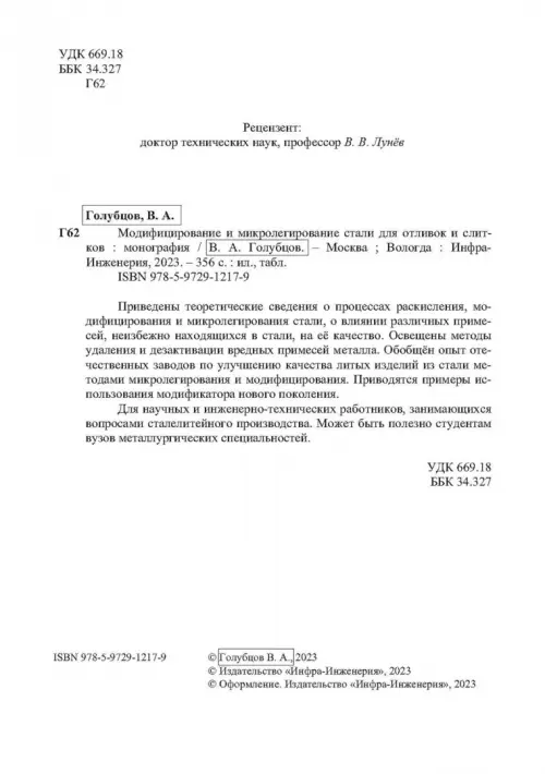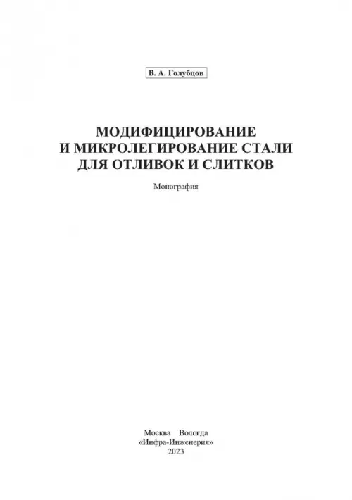 Если вы обнаружили ошибку в описании товара «Модифицирование и микролегирование стали для отливок и слитков» (авторы: Голубцов Валерий Александрович), то выделите её мышкой и нажмите Ctrl+Enter. Спасибо, что помогаете нам стать лучше!