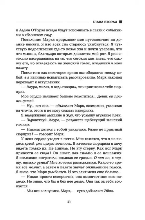 Слушай, эта история меня просто поразила. Сложно было оторваться, как будто тебя втягивают в водоворот эмоций. Один момент – жизнь Лауры - мечта, а тут пам и катастрофа. Пять минут назад ты думал, что все идеально, и вдруг - инвалидная коляска. Вот так и живем. И знаете, как ни странно, совершенно неожиданно раскрываются такие глубины человеческой ...