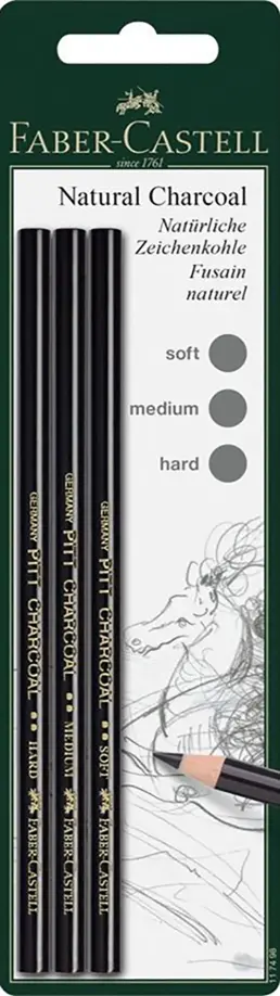 Натуральный уголь-карандаш PITT SOFT MEDIUM, HARD 3шт (117498)