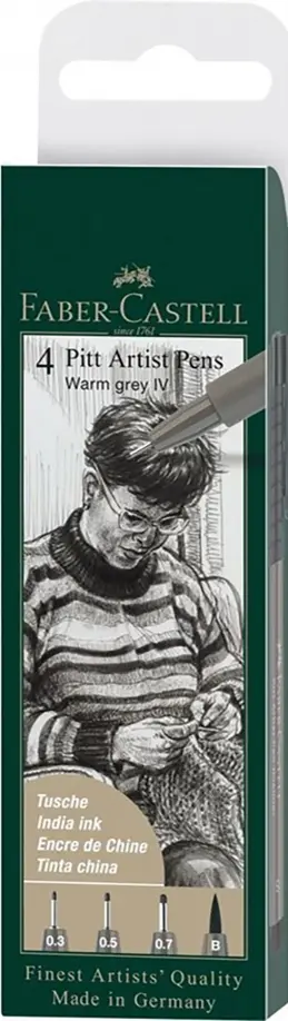Рисунки тушью имеют очень давнюю художественную традицию. Это всегда было интересным средством для художников и графиков, оно придает рисункам выразительность и долговечность, а также может сочетаться со многими другими техниками рисования. Faber-Castell объединил все преимущества художественных чернил с преимуществами современной, простой в использовании ручки - ручки Pitt Artist Pen. Пигментированные и очень светостойкие чернила для рисования идеально подходят для эскизов, рисунков, макетов, дизайна одежды и иллюстраций