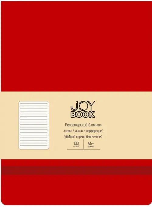 Блокнот серии JOY BOOK не только красив, но и практичен. Твердая обложка из эко кожи в трендовых оттенках снабжена фиксирующей резинкой, бумага имеет кремовый оттенок, а в конце блока спрятан кармашек для важных мелочей вроде визиток, билетов, записок.А6- формат позволяет иметь блокнот всегда под рукой. Внутренний блок 100 листов из высококачественной тонированной бумаги плотностью 70 г/м2,линия.