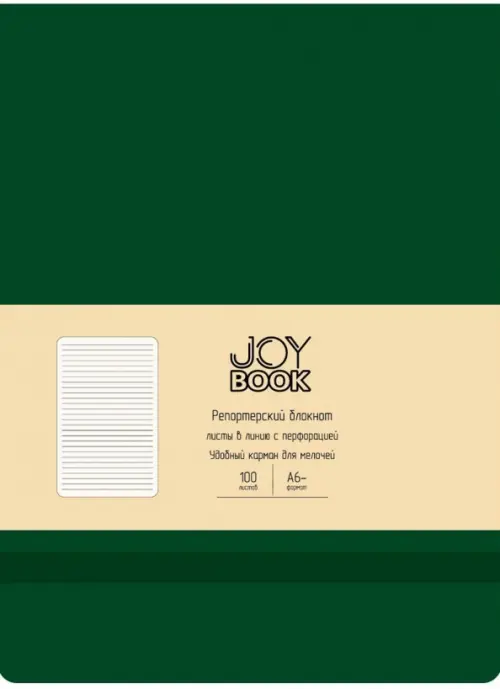 Блокнот серии JOY BOOK не только красив, но и практичен. Твердая обложка из эко кожи в трендовых оттенках снабжена фиксирующей резинкой, бумага имеет кремовый оттенок, а в конце блока спрятан кармашек для важных мелочей вроде визиток, билетов, записок.А6- формат позволяет иметь блокнот всегда под рукой. Внутренний блок 100 листов из высококачественной тонированной бумаги плотностью 70 г/м2,линия.