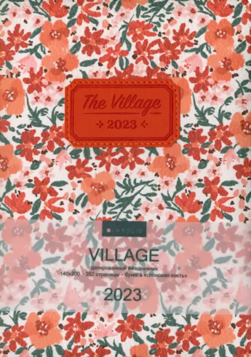 Обложка: твердая с поролоном, матовая искусственная кожа с крупной фактурой и принтом "Оранжевые цветы". Блок датированный, 352 стр., скругленные уголки, 2 ляссе, информационный блок, бумага: цвет - слоновая кость, 70 г/м2, печать 2+2. Особенности: нашивка с блинтовым тиснением и прострочкой.