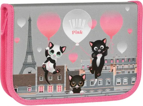 Пенал Tiger Family, 1 отделение, 1 откидная планка, ткань, Think Pink In Paris