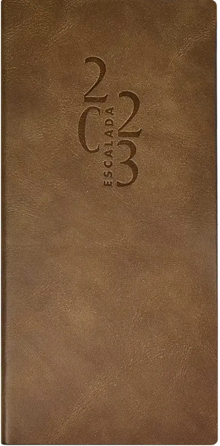 Еженедельник датированный 2023 ESCALADA 80х165 мм, 64 л., кожзам: мягкий переплёт, материал обложки: искусственная кожа "Бакстер"; декор: блинтовое тиснение; способ крепления блока: ниткошвейный; вн. блок: 64 л., белый офсет 70 г/м?, печать в одну краску (линия), справочный материал: есть; перфорация углов блока: нет; отделка среза: окрашивание пантоном; закладка/-и: нет; каптал: нет; форзац: печать пантоном; персонализация возможна: да; индивидуальная упаковка: ПЭТ-пакет