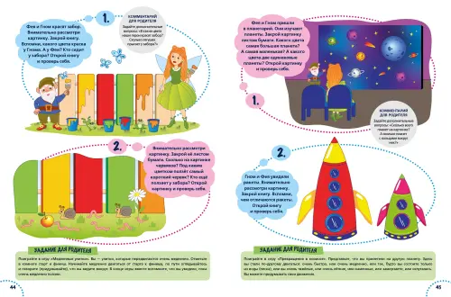 Мне кажется, будет полезна детям, которые не очень внимательные и рассеянные, как мой)) Здесь много заданий на "что не так", "что пропало", "что лишнее", "вспомни". Даже папа подключился к занятиям с ребёнком, потому что материал представлен доступно, с хорошими комментариями/ подсказками.