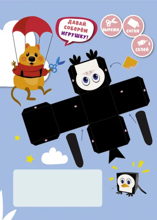 На обороте папки содержится занимательная игра "Собери игрушку" (фигура для вырезания и склеивания), которая делает набор развивающей продукцией для детей.