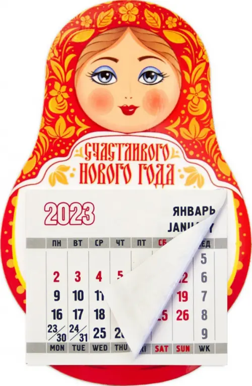 Магнит-матрешка с календарным блоком на 2023 год Счастливого Нового года