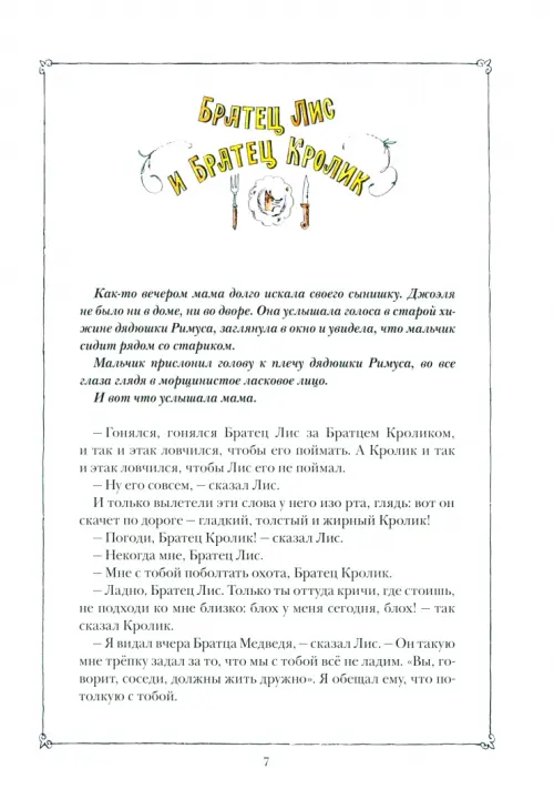 Сказки о находчивом проказнике Братце Кролике, хитроумном Братце Лисе и их соседях знают и любят дети во всем мире. Все эти истории написаны на сюжеты афроамериканского фольклора, собранные и переработанные американским журналистом и писателем Дж. Ч. Харрисом (1848—1908). Российские читатели познакомились со сказками Харриса в вольном переводе замечательного писателя М. А. Гершензона (1900—1942). Издание сопровождается циклом иллюстраций известного петербургского художника Латифа Казбекова.