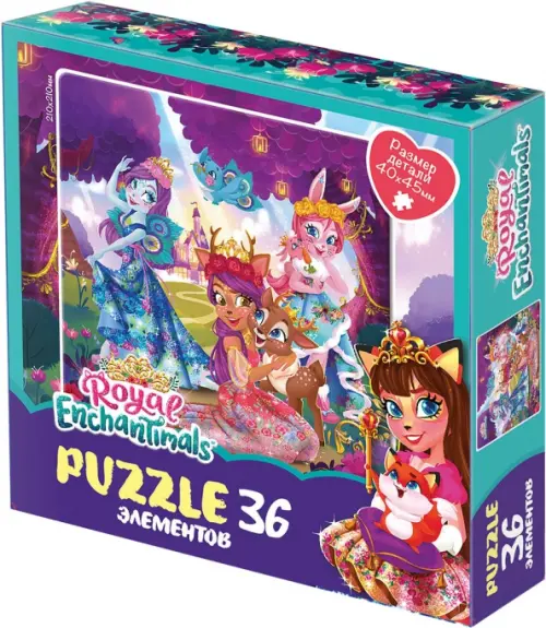Пазл 36 элементов, основанный на любимых приключениях принцесс Энчантималс понравится любому ребенку, а сборка яркой картинки принесет радость не только малышам, но и их родителям. Соберите всю коллекцию новых пазлов!