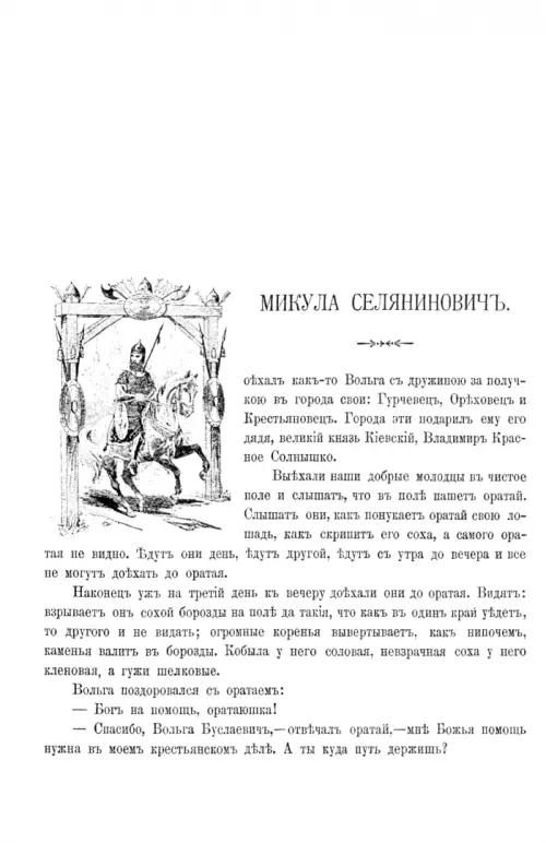 Репринт с издания. 2-е изд. - СПб., А.Ф. Девриен, ценз. 1898. С 11 цветными хромолит. по акварелям Н.Н. Каразина. Содержание: Старшие Богатыри: Вольга Буслаевич; Микула Селянинович; Святогор; Михайло Потык; Младшие Богатыри: Сухмантий Одихмантьевич; Дунай Иванович; Алеша Попович; Добрыня Никитич; Иван Игнатьевич; Илья Муромец; Заезжие Богатыри: Ставр Годинович; Соловей Будимирович; Чурило Пленкович; Дюк Степанович; Новгородские Богатыри И Бытовые Былины: Садко богатый гость; Василий Буслаевич; Аника Воин; Горюшко серое и Упава молодец; О том, как на Руси богатыри перевелись.