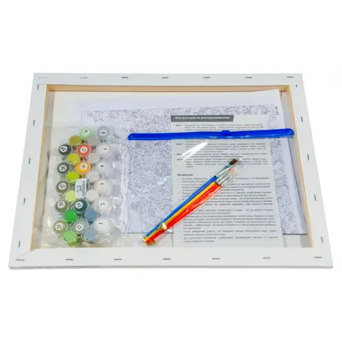 Рисуйте! Создавайте прекрасные сюжеты, станьте настоящим художником! С наборами Живопись на холсте это легко и просто, в комплекте есть все для работы над картиной на холсте. Просто возьмите стакан с водой и бумажную салфетку и время для творчества наступило. Размер 30*40 см. оптимальный для того чтобы получился красивый детализированный сюжет. Основа картины - хлопковый холст на деревянном подрамнике с напечатанной схемой изображения. Холст загрунтован и полностью готов к нанесению краски, акриловые краски на водной основе экологически безопасны, номера на баночках соответствуют номерам на схеме. Количество красок достаточное для раскрашивания картины, даже в 2 слоя.