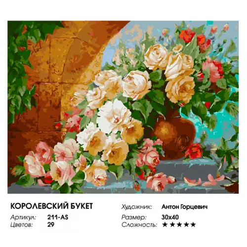 Если вы обнаружили ошибку в описании товара «Живопись на холсте. Королевский букет», то выделите её мышкой и нажмите Ctrl+Enter. Спасибо, что помогаете нам стать лучше!