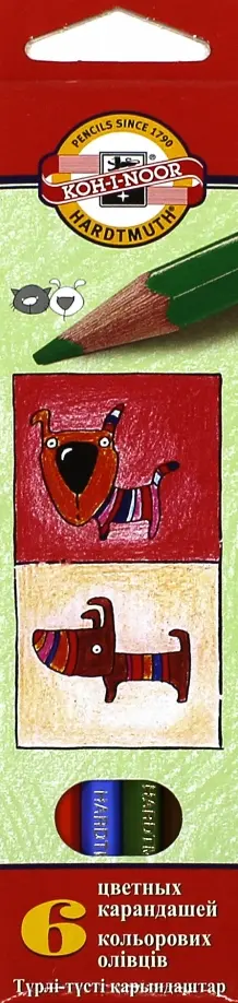 Набор цветных карандашей. Собаки и кошки, 6 цветов