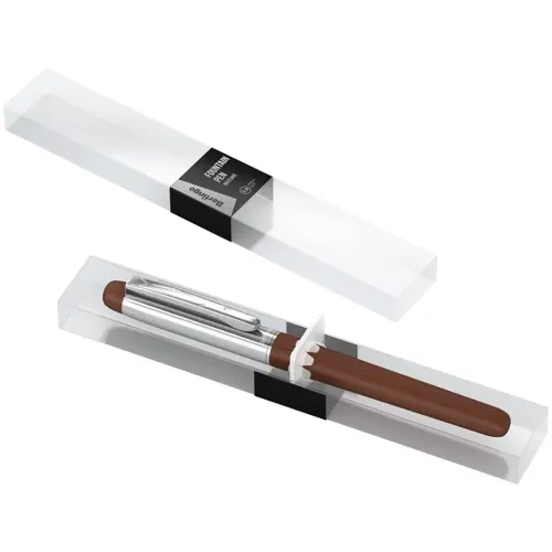 Ручка представлена в оригинальном корпусе с отделкой цвета "красное дерево" в сочетании с отделкой из хромированного металла и прочным металлическим основанием. На колпачке есть металлический клип, который позволит закреплять ручку, где потребуется. Немецкие чернила гарантируют мягкое, приятное письмо. Стильный прозрачный подарочный футляр ручки Berlingo Nature, демонстрирующий преимущества продукта, запечатан в пленку, предотвращающую повреждения при хранении и перевозке. Перьевая ручка станет достойным вариантом подарка для тех, кому вы хотите сделать приятное.