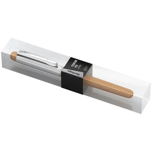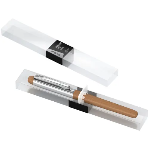 Ручка представлена в оригинальном корпусе с отделкой деревом цвета "дуб" в сочетании с отделкой из хромированного металла и прочным металлическим основанием. На колпачке есть металлический клип, который позволит закреплять ручку, где потребуется. Немецкие чернила гарантируют мягкое, приятное письмо. Стильный прозрачный подарочный футляр ручки Berlingo Nature, демонстрирующий преимущества продукта, запечатан в пленку, предотвращающую повреждения при хранении и перевозке. Перьевая ручка станет достойным вариантом подарка для тех, кому вы хотите сделать приятное.
