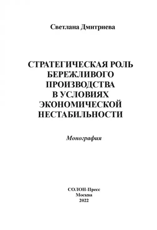 Стратегическая роль бережливого производства в условиях экономической нестабильности. Монография
