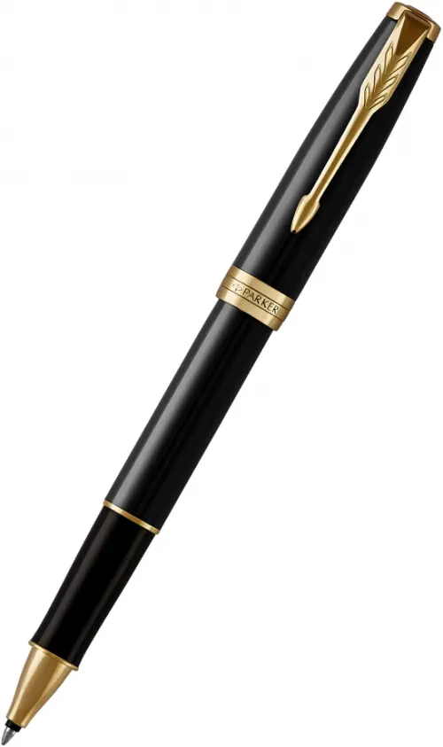 Ручка-роллер «Parker Sonnet Black Lacquer GT». Цвет письма-черный, линия письма – тонкая, в подарочной упаковке. Произведено во Франции.