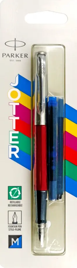 Ручка перьевая "Parker Jotter Orig Red" с пластиковым корпусом. Линия письма средняя. Произведено во Франции.