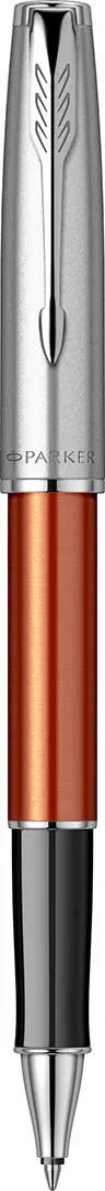 Ручка-роллер «Parker Sonnet Sand Blasted ORANGE SB CT». Линия письма – тонкая, чернила - черные, в подарочной упаковке. Произведено во Франции.