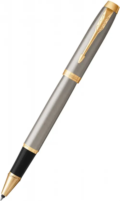 Ручка-роллер "Parker IM Brushed Metal GT". Линия письма - тонкая, цвет чернил черный, в подарочной упаковке. Произведено в Китае.