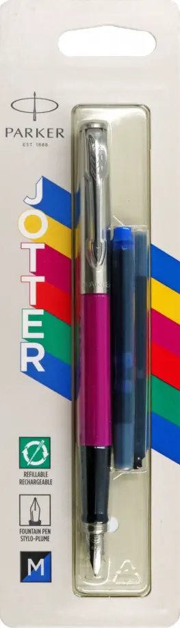 Ручка перьевая "Parker Jotter Orig Magenta" с пластиковым корпусом. Линия письма средняя. Произведено во Франции.