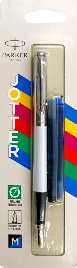 Ручка перьевая "Parker Jotter Orig White" с пластиковым корпусом. Линия письма средняя. Произведено во Франции.