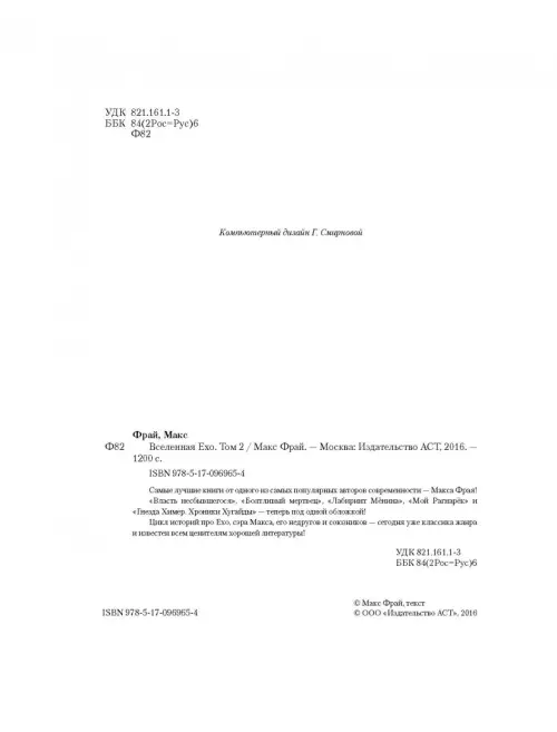 Если вы обнаружили ошибку в описании товара «Вселенная Ехо. Том 2» (авторы: Фрай Макс), то выделите её мышкой и нажмите Ctrl+Enter. Спасибо, что помогаете нам стать лучше!