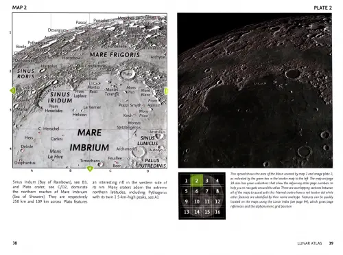Comes with a photographic atlas of lunar features with plates and annotated maps.