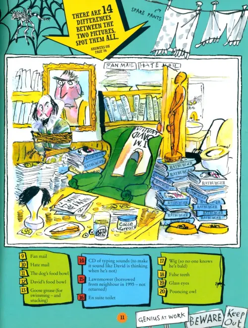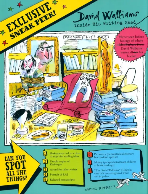 В ней можно встретить персонажей Дэвида Уолльямса, найти весёлые тесты и интересные факты о творчестве автора, и даже создать собственную обложку в стиле прославленных иллюстраторов Квентина Блейка и Тони Росса.