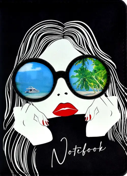 Записная книжка, А6+, арт. 61736/ 20 ДЕВУШКА В ОЧКАХ (кожзам, 126x174 мм, 96 л., твёрдый переплёт с поролоном, ниткошвейный, аппликация с анимированным изображением, шелкография в две краски, белый офсет 70 г/м?, печать в одну краску, клетка, справочный материал: нет, печать форзаца: печать в одну краску, закладка: одно ляссе, ПЭТ-пакет)