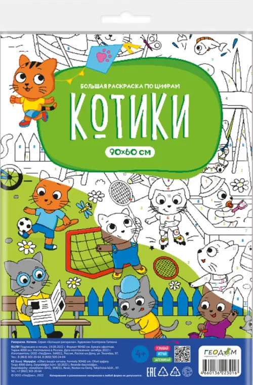 Большая раскраска с заданиями Котики