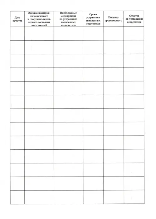 Журнал проверки санитарно-гигиенического и спортивно-технического состояния мест занятий в ДОО