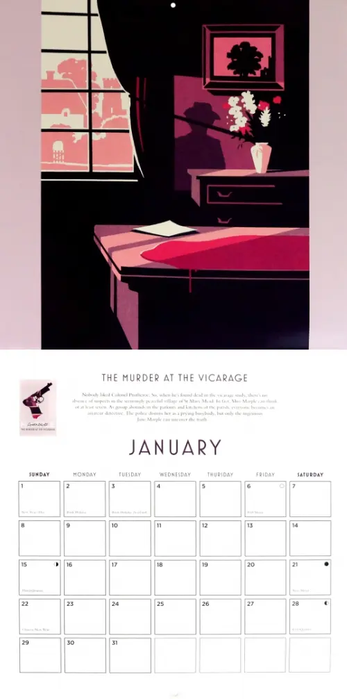 The first ever official Agatha Christie Calendar celebrates the world's favourite female detective, Miss Jane Marple, with fourteen paintings by the latest Marple book cover artist, Bill Bragg.