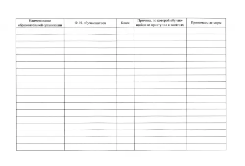 Журнал учета детей, не приступивших к занятиям по неуважительным причинам