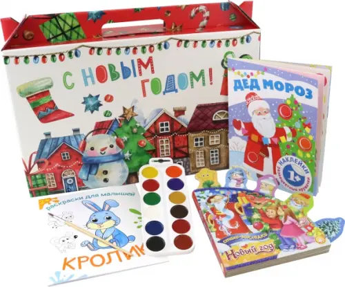 Подарочный набор от Майшоп — «Стихи с кроликом» — беспроигрышный вариант, чтобы порадовать ребёнка на Новый год или группу детей в школе и детском саду, сэкономив при этом родительское время и силы! Праздничное настроение создаёт подарочная коробка с уникальным новогодним дизайном, внутри которой — интересная книжка и всё необходимое для творчества и веселья. Подарочная коробка сделана из прочного картона, легко открывается и закрывается, подходит для многократного использования. По желанию к предметам в коробке можно добавить подарки и от себя.