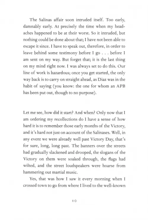 From his prison cell, Antonio Martens, an interrogator for the recently fallen dictatorship, awaits execution. His charge? Multiple counts of murder; the murder of those disappeared by the state. Bereft of authority, and unable to avoid the consequences of his actions any longer, Martens turns his story to his involvement in the assassination of the high-profile Salinas family, and with it peers into the murderous mechanics of a regime bent on achieving its ends - no matter the means.