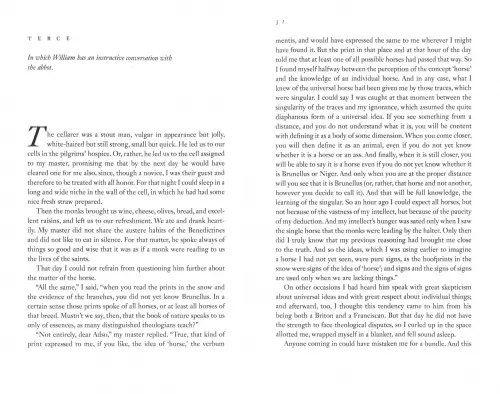 The year is 1327. Franciscans in a wealthy Italian abbey are suspected of heresy, and Brother William of Baskerville arrives to investigate.When his delicate mission is suddenly overshadowed by seven bizarre deaths, Brother William turns detective. He collects evidence, deciphers secret symbols and coded manuscripts, and digs into the eerie labyrinth of the abbey where extraordinary things are happening under the over of night. A spectacular popular and critical success, The Name of the Rose is not only a narrative of a murder investigation but an astonishing chronicle of the Middle Ages.