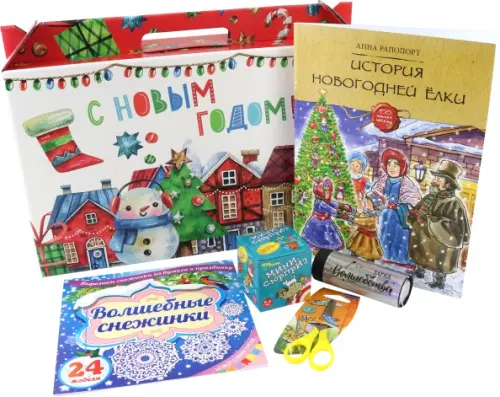 Набор очень актуальный сейчас - новогодняя книга, снежинки для вырезания, хлопушка, игрушка, заказывала своим племянникам, всем одинаковые. Уверена им понравится! И, кстати, коробка красивая, в нее можно доложить сладости.