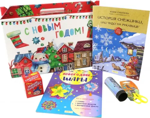 Подарочный набор от Майшоп — «Новогодние шары» — беспроигрышный вариант, чтобы порадовать ребёнка на Новый год, класс в школе или группу в детском саду, сэкономив при этом родительское время и силы! Праздничное настроение создаёт подарочная коробка с уникальным новогодним дизайном, внутри которой — интересная книга и всё необходимое для творчества и веселья. Подарочная коробка сделана из прочного картона, легко открывается и закрывается, подходит для многократного использования. По желанию к предметам в коробке можно добавить подарки и от себя.
