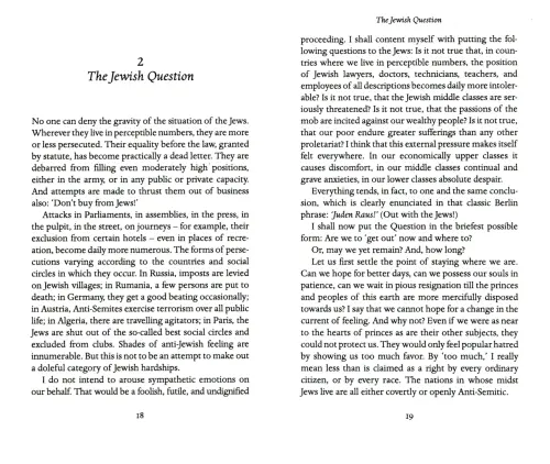 Herzl's political and social plea was the result of centuries of restrictions, hostility and pogroms against the Jews of Europe. His revolutionary proposal for the solution to anti-Semitism was a Jewish state, where Jews could live in peace, free from persecution - and this hugely influential essay led directly to the creation of Israel.