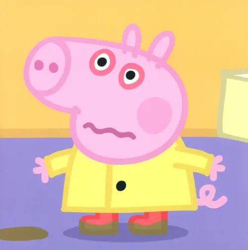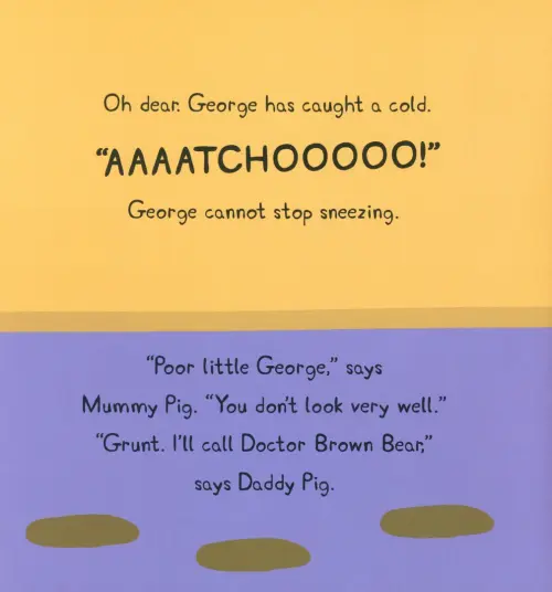 Oh dear! Silly George has gone outside in the rain without his rain hat on, and now he's got a cold.