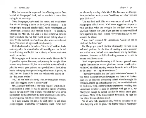 Burmese Days describes corruption and imperial bigotry in a society where, 'after all, natives were natives'. When Flory, a white timber merchant, befriends Indian Dr Veraswami, he defies this orthodoxy. The doctor is in danger: U Po Kyin, a corrupt magistrate, is plotting his downfall. The only thing that can save him is membership of the all-white Club, and Flory can help. Flory's life is changed further by the arrival of beautiful Elizabeth Lackersteen from Paris, who offers an escape from loneliness and the 'lie' of colonial life.