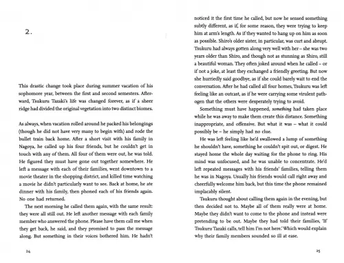 Since that day Tsukuru has been floating through life, unable to form intimate connections with anyone. But then he meets Sara, who tells him that the time has come to find out what happened all those years ago.